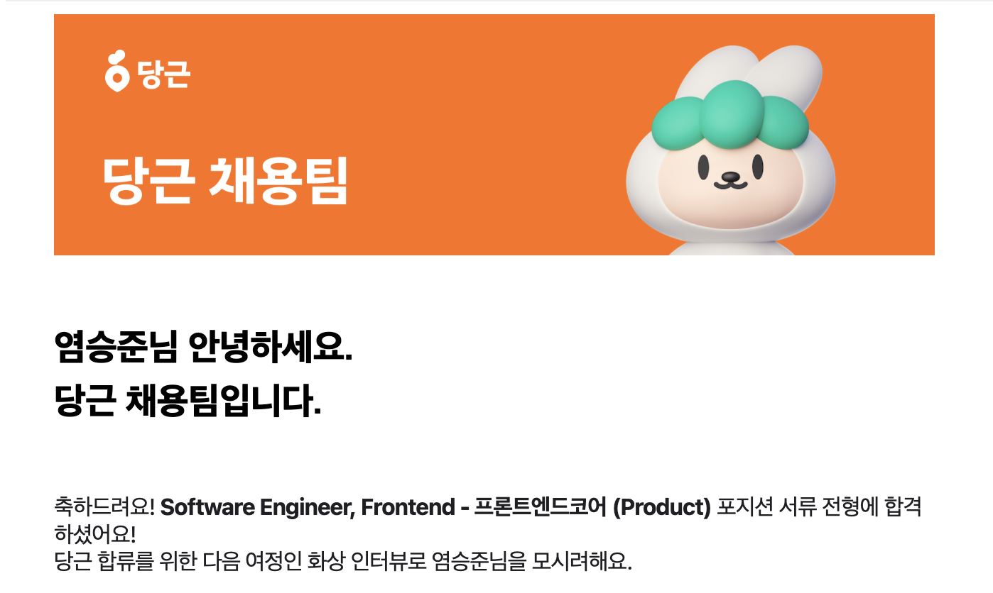 앞으로 나아가던 중, 운이 좋게 당근에 서류를 합격하게 되었다.