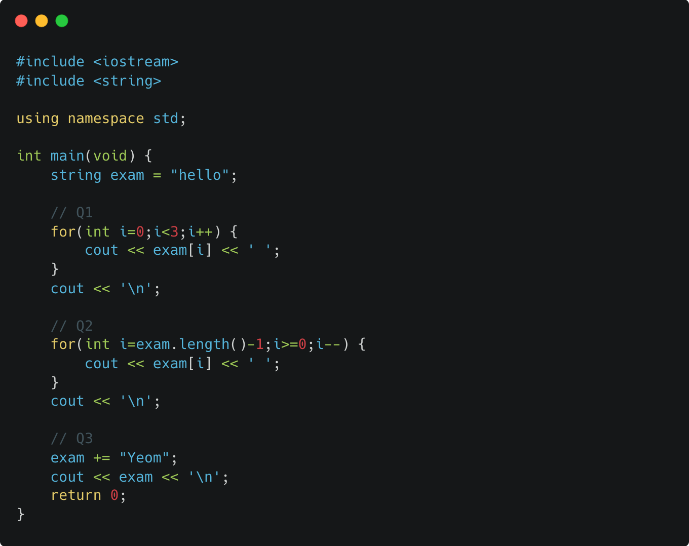Q1. 앞에서부터 3개의 문자열을 출력하라.