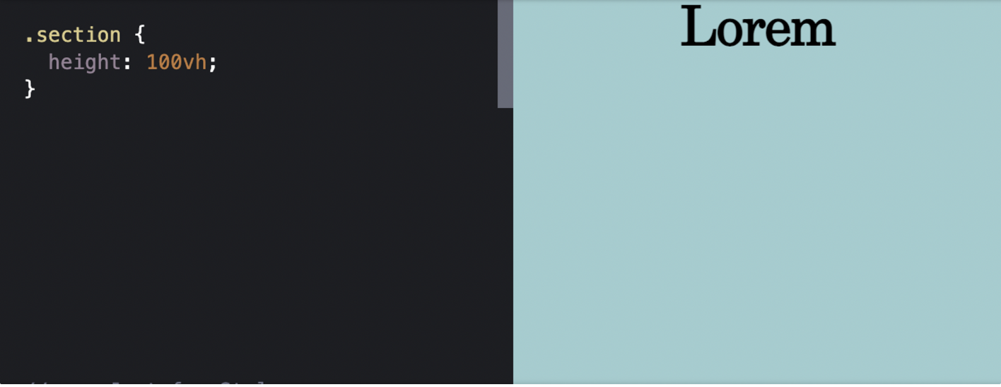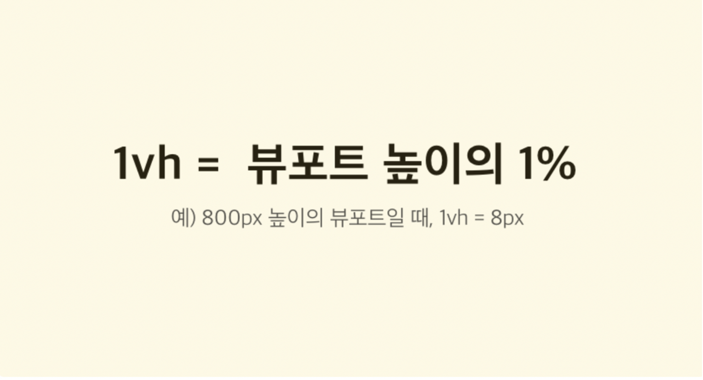 반면, height: 100vh를 지정하면 부모의 높이에 무관하게 전체 영역을 차지합니다. vh는 부모가 아닌, 뷰포트를 기준으로 한 단위니까요!